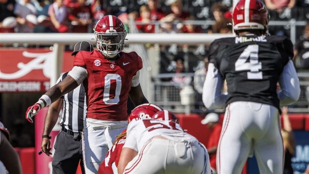 RB Jase McClellon (Falcons R6), RB Roydell Williams, WR Isaiah Bond, WR Ja’Corey Brooks, WR Jermaine Burton (Bengals R3), TE Amari Niblack (Texas transfer), OC Darrian Dalcourt, OG Seth McLaughlin (Ohio State transfer), OT JC Latham (Titans R1), DT Justin Eboigbe (Chargers R4), LB Christopher Allen, LB Chris Braswell (Buccaneers R2), LB Christian Harris, LB Trezmen Marshall, LB Dallas Turner (Vikings R1), CB Trey Amos, CB Terrion Arnold (Lions R1), CB/PR Kool-Aid McKinstry (Saints R2), FS Jaylen Key (Jets R7), SS/PR Caleb Downs (Ohio State transfer), and PK Will Reichard (Vikings R6).